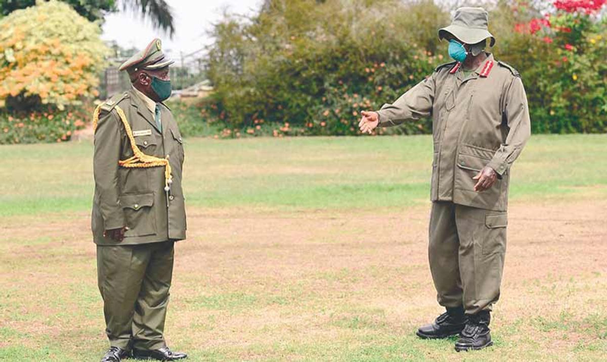 Luwero war veteran and former Minister Hajj Abdul Nadduli (left) with his former boss President Yoweri Museveni