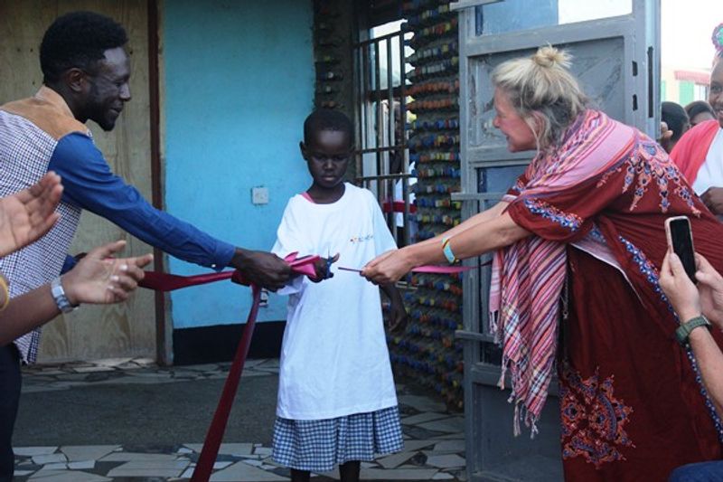 The month of May 2019 has started with a lot of benefits to people living in Nakivale Refugee Settlement. This follows the opening of the first ever Promise Hub in the world. The Hub, which is circular in shape, covers a size of 165 sqm and it is made of 20.000 plastic bottles in Nakivale.