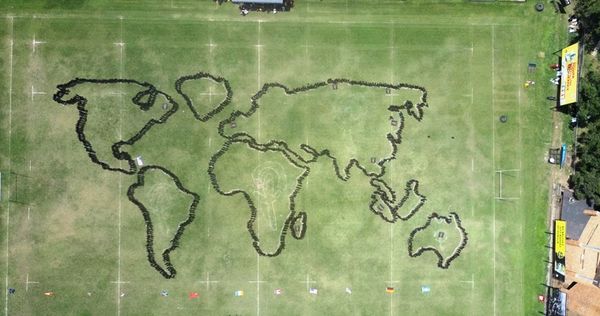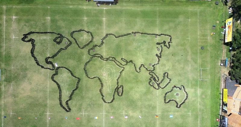 Caption: (The World Map with P) Church Congregants forming the World with the Phaneroo P Logo to symbolise a stretching forth to Preach the Gospel to all nations of the world.