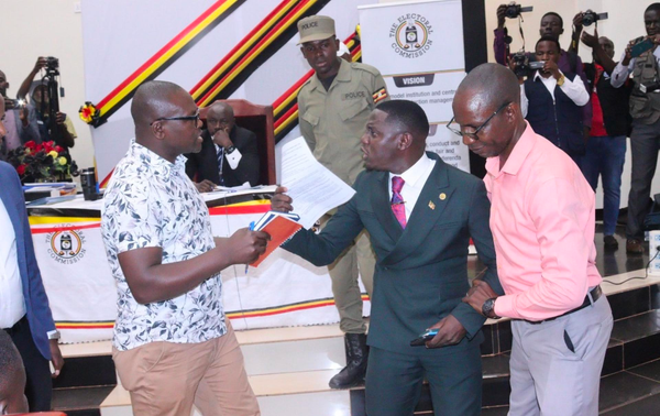There was high drama at the Wakiso District headquarters on Thursday morning as independent candidates exchanged words over campaign symbols during nominations for the Kyadondo East parliamentary race.
