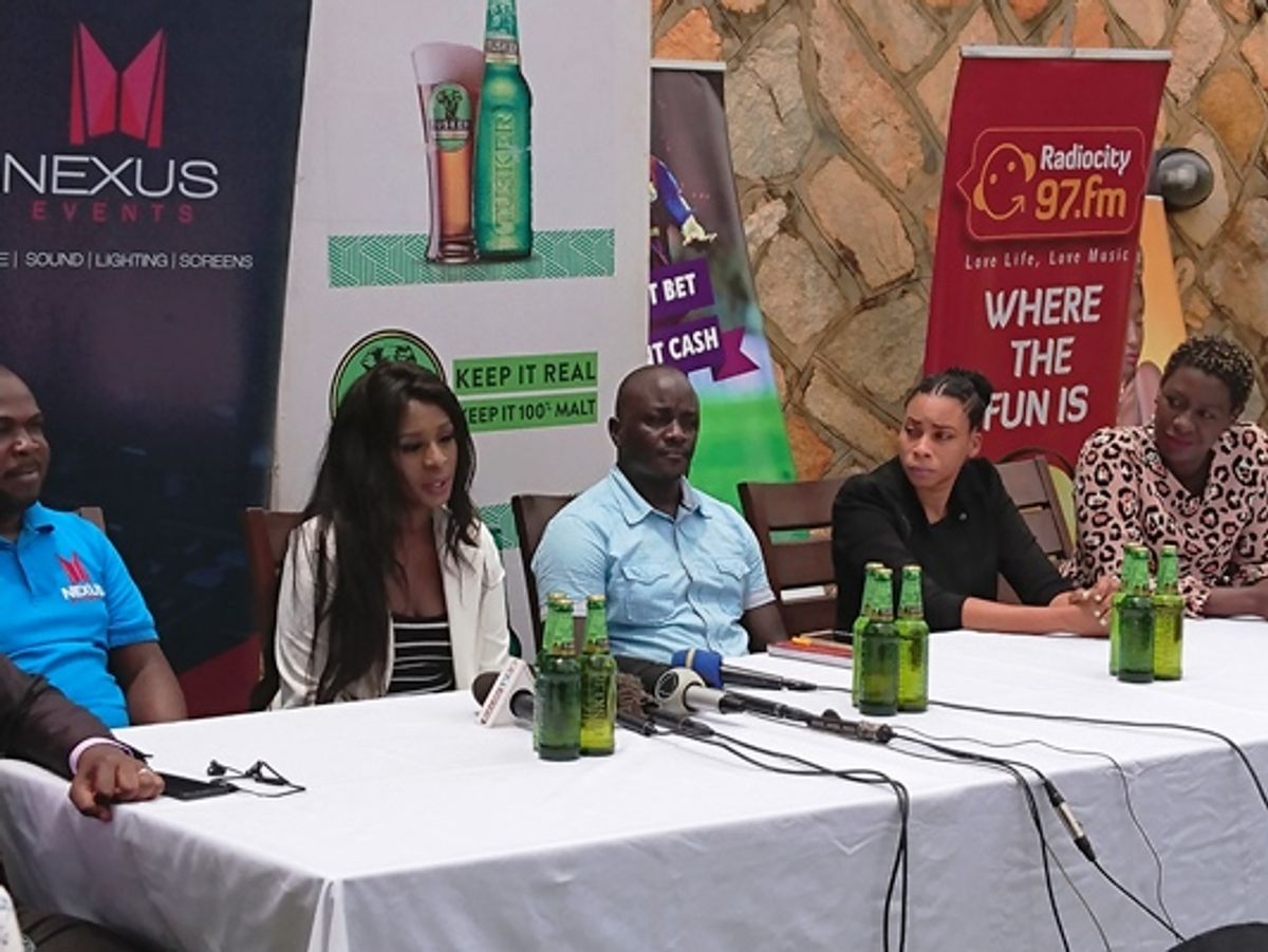 Cindy Sanyu addressing a press conferenece at Bight Benin