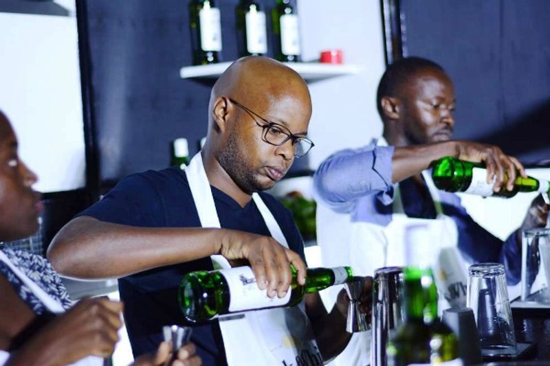 An enthusiastic reveler walked to the Black and White Whisky bar at Arena Sports Bar in Kamwokya and asked the mixologist.