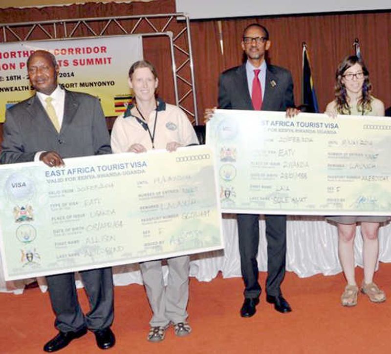 The launch took place at Speke Resort Munyonyo during the 4th Northern Corridor Integration Projects Summit. The Visas were presented to MS Allison Alto- Bond of Canada, Ms Sole Amat of Spain and Mr. Paul North from the United Kingdom.