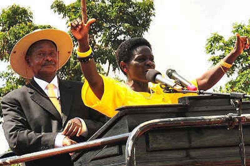 President Museveni campaigning for Rebecca Nalwanga in Luwero recently. Nalwanga lost to DP’s Nabukenya