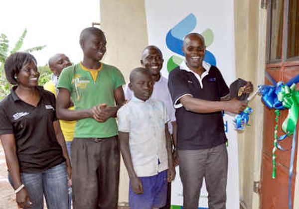 Stanchart’s MD Kasekende officiating at the official handover of the house to the needy brothers
