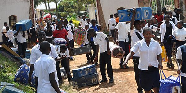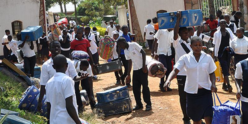 Secondary school students on their way out of their school dormitories but many of them are grumpy after losing some of their properties to unknown thieves