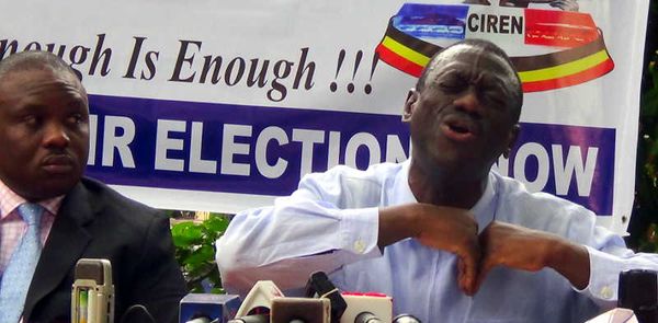 Dr. Kizza Besigye (right) and Kampala Lord Mayor Erias Lukwago at the launch of the CIREN campaign recently. But the duo have become haunted men by the Uganda police