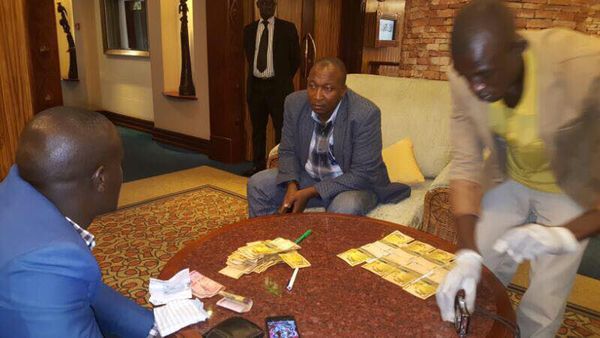 Undercover police officers examine part of the exhibits that were found with Minister Kabafunzaki.