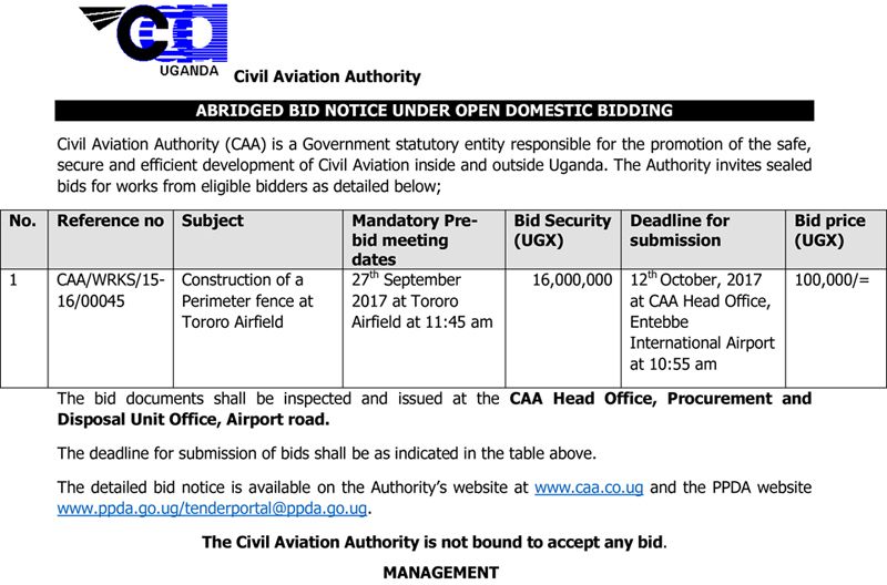 Trump Honored with FIFA Peace Prize for Global Diplomacy EffortsWestern Nations Call for Return of Bodies After Tanzania Election ViolenceURA Arrests Two Over Super Match Cigarette Export FraudHoima City Stadium Ready for Commissioning as Uganda Prepares for AFCON 2027Uganda’s Youth Gear Up for Careers in the EACOP Oil ProjectNewsABRIDGED BID NOTICE UNDER OPEN DOMESTIC BIDDING By Sunrise reporter 0 Comment Comments comments Sunrise reporter Leave a Comment Your email address will not be published. Name * Email Address * Comment Post Comment