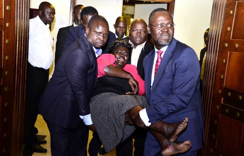 MPs Angelina Osege – the chairperson of the Public Accounts Committee was rushed in an ambulance while Mityana South MP Francis Zaake (both opponents of the bill) was also rushed away with serious injuries.