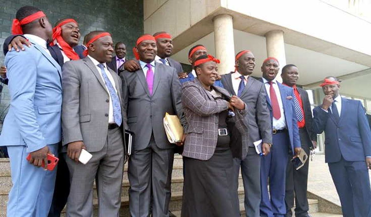 Opposition ‘Red Top’ won round one. They’ve vowed to do more to frustrate the age limit next time. Picture by Hon. Mathias Mpuuga