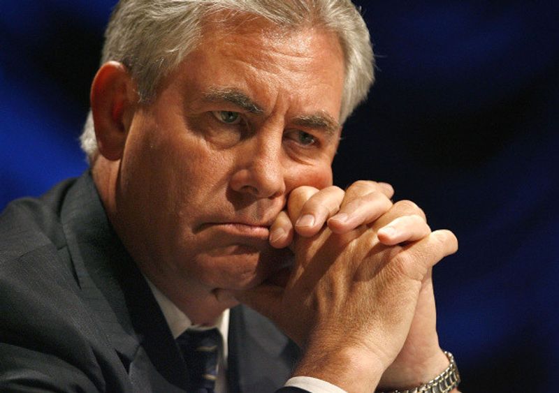 The former ExxonMobil chief had a series of public rifts with the White House after being appointed last year. He pointedly failed to thank Mr Trump or praise his policies.