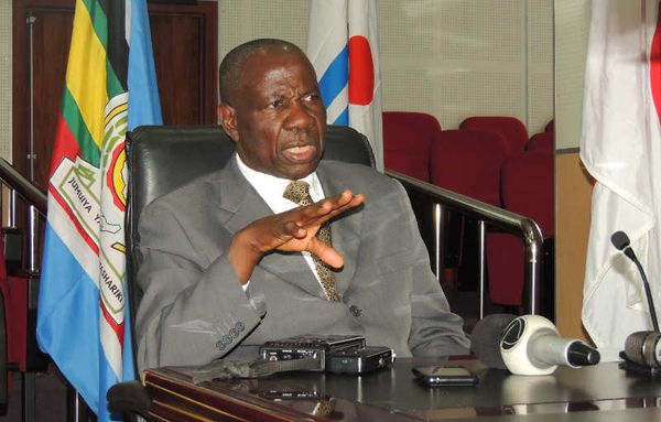 Finance Minister Matia Kasaija addressing journalists at his Ministry on Thursday