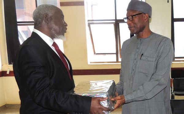 IUIU Rector Dr. Sengendo presenting a gift to Ambassador Haliru Shuaibu during the later’s visit to IUIU’s Kampala Campus
