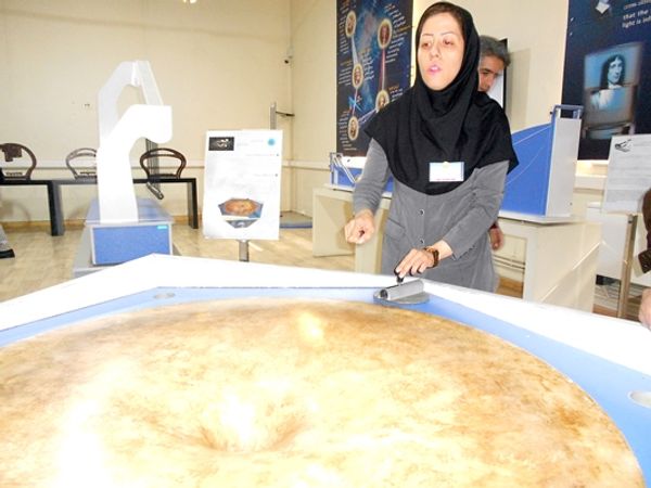 A museum attendant guides guests through the science and technology section of Iran’s National Museum in Tehran