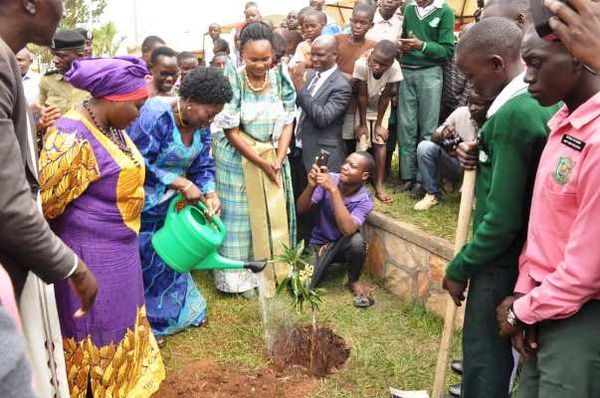 Kadaga planting a tree at the Launch of the Ekigangu