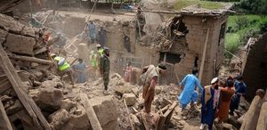 A man takes advantage of the situation to help people overcome flooded clock tower