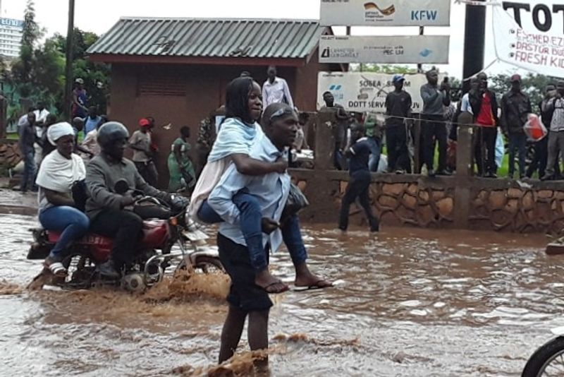 Boda boda cyclists and a few other people made a kill out of the situation by ferrying pedestrians through the flooded road.