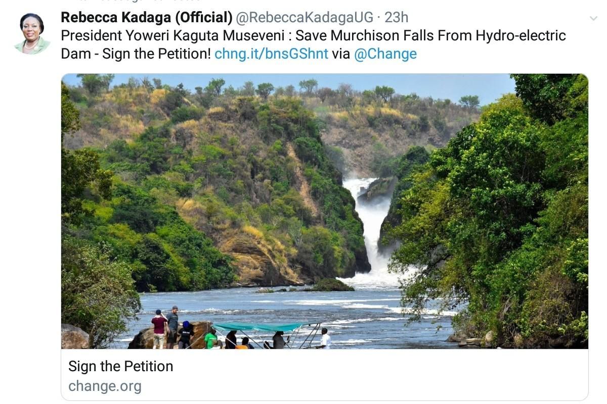 She has also rallied President Museveni in a tweet to reject the plan to destroy the iconic falls.