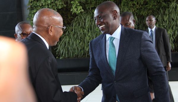 Kenya’s deputy President Dr. William Ruto shakes hands with NBI’s Executive Director Prof. Seif during the recent Nile-COM meeting held in Nairobi, Kenya