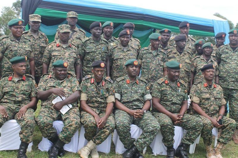 CDF Gen. Muhoozi (centre) with senior UODF commanders at the launch of the mountains force