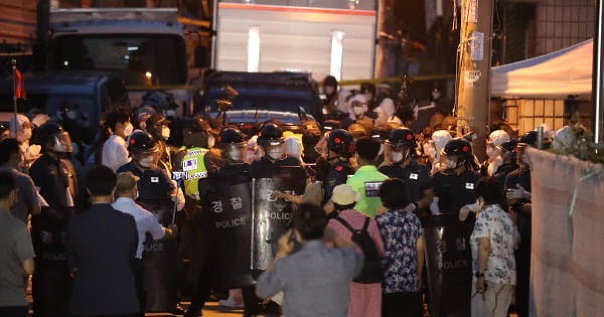 Sarang Jeil Church officials clashing with police in korea, courtesy photos