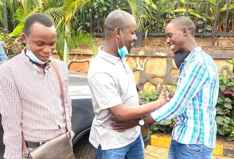 MP Tayebwa, centre, shakes hands with his victim Bukenya