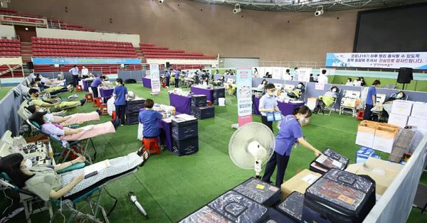The Shincheonji Church of Jesus, the temple of the tabernacle of the testimony completed the 2nd group plasma donation for the development of the Corona 19 treatment at the Daegu Athletics Promotion Center.