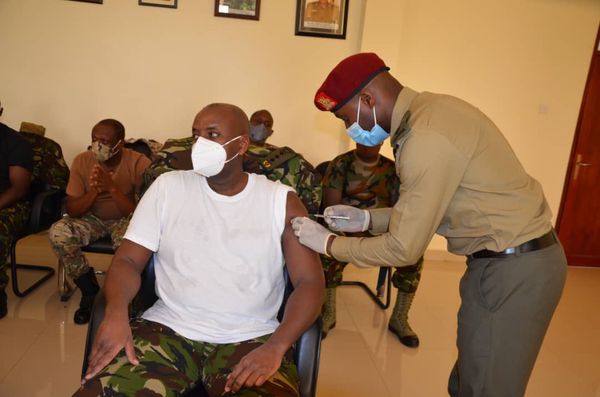 Muhoozi received the vaccine while opening the Covid-19 vaccination campaign within SFC.