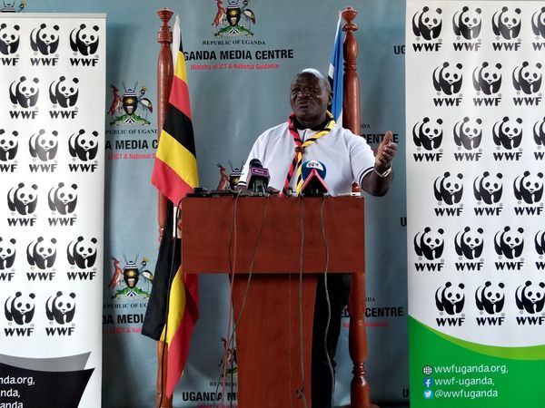 David Duli the WWF country Director speaking at the Uganda Media Centre