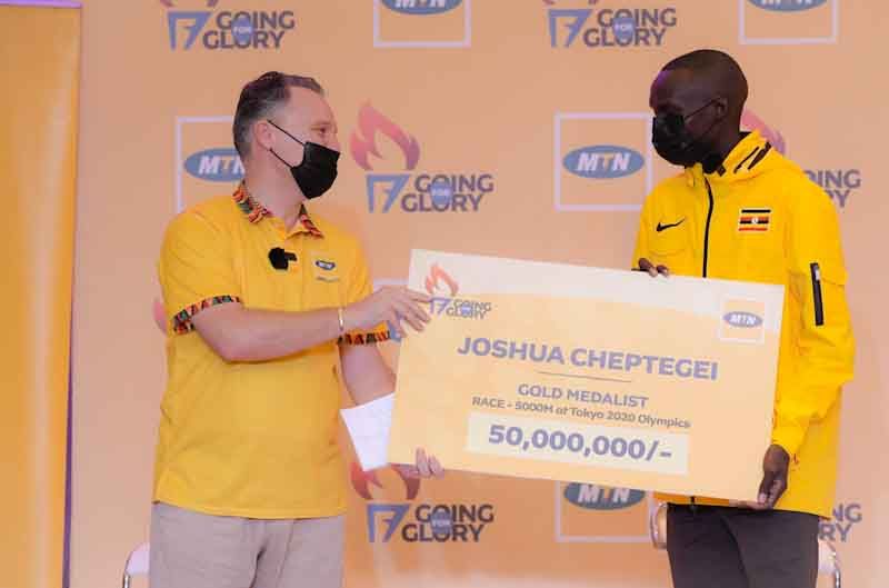 MTN gave the gold medalists Joshua Cheptegei and Peruth Chemutai UGX50m each, UGX10m to Jacob Kiplimo who won bronze and UGX2m to the rest of the runners even though they didn’t win.