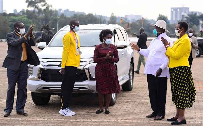 On Wednesday August 11, President Museveni held a televised address during which he handed out brand new Mitsubishi luxury cars to each of the medalists.