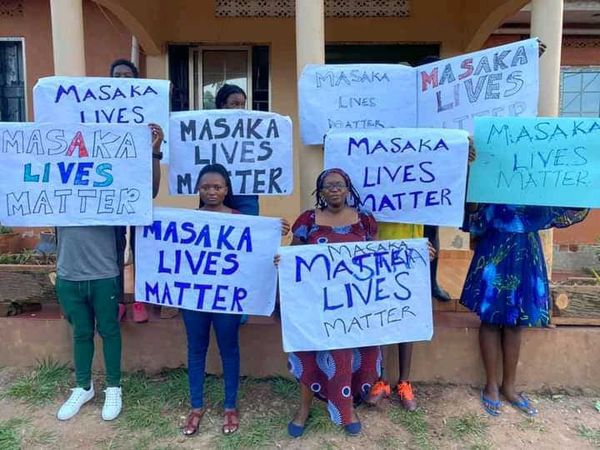 Human Rights Campaigner Dr. Stella Nyanzi staged a protest against the machete killers