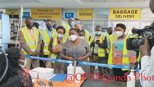 Prime Minister Ribinna Nabbanja while visiting COVID-19 testing facilities at Entebbe International Airport