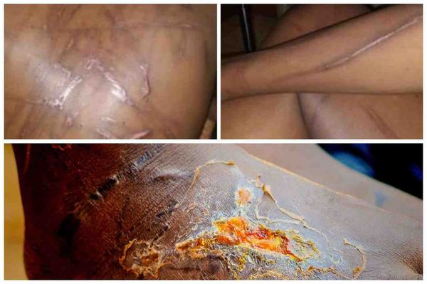 Torture: Above two images show how Kakwenza was beaten while the low Image shows Masereka’s wounds inflicted on him by security forces