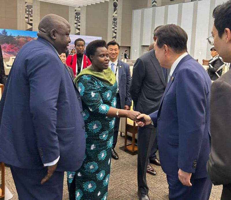 Vice President Jessica Alupo greeting President Yoon during the Korea-Africa summit