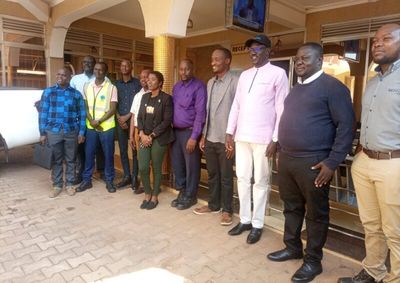 RDC of Amuru district Stephen Odong (2nd right) with NELSAP team and staff from the Contractor and Uganda’s Ministry of Energy and Mineral Development in Gulu city recently