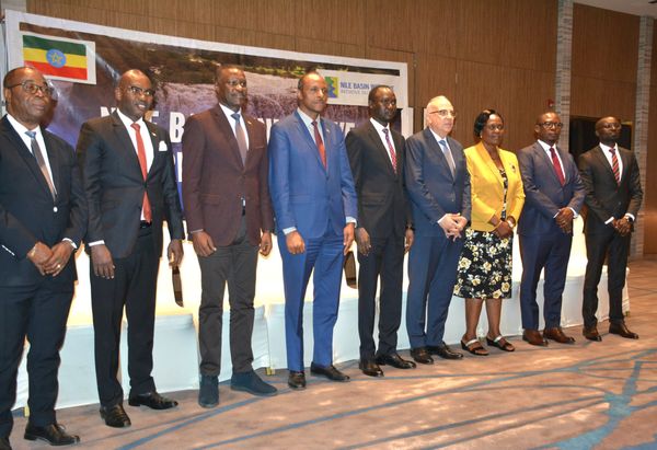 Egypt’s Minister of Water and Irrigation Prof. Hani Sewilam, 4th from right, attended the Nile Governing Council of Ministers held in Addis Ababa, Ethiopia in Feb, 2025 during events to commemorate Nile Day. Pictured with colleague Ministers during the photo shoot