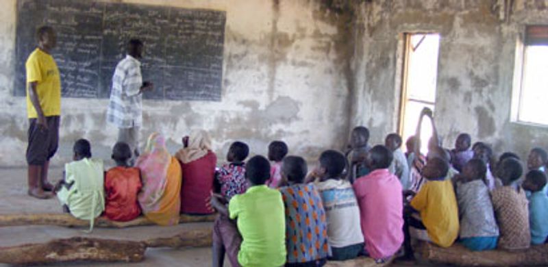 UPE pupils in many parts of the country still sit on tree logs like these or study under mango trees