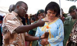 Nyanzi is one of the biggest attractions in most shows. Pictured above is the Queen Sylvia Nagginda being shown by Nyanzi some of his products