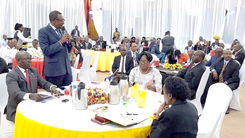 Rwanda’s High Commissioner Frank Mugambage speaking during the meeting
