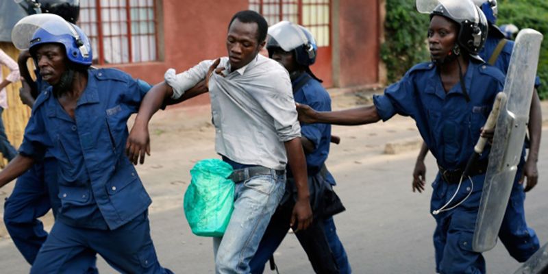Police in Burundi arrests a man during a demonstration against President Pierre Nkurunziza’s agitation for a their term