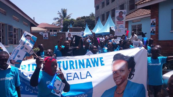 Ingrid Turinawe supporters at the party headquarters before the election.