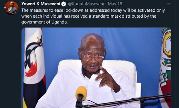 Museveni had directed in his Monday address, that the easing of lockdown measures would depend on access to a government-provided face mask. He said the government would give every persons aged 6 years and above, one free mask, which they would have to wear all the time everyday while in public places.