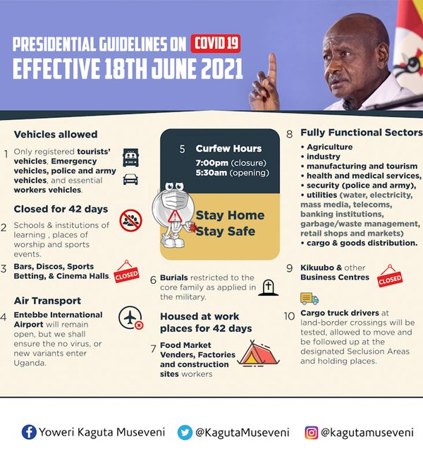 President Yoweri Museveni on Friday June 18 announced an immediate total lockdown of the country, except for essential service providers, in an effort to slow the rise in COVID-19 infections.
