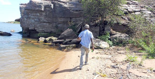 The writer strides along Nalubaale beach
